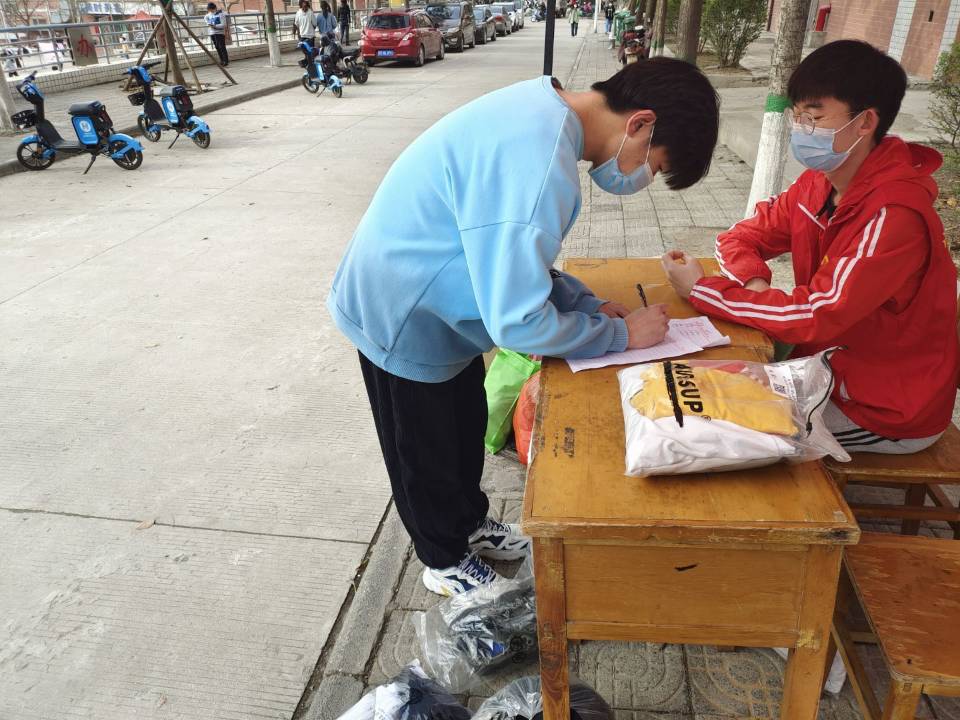 同学们捐赠衣物、信息登记