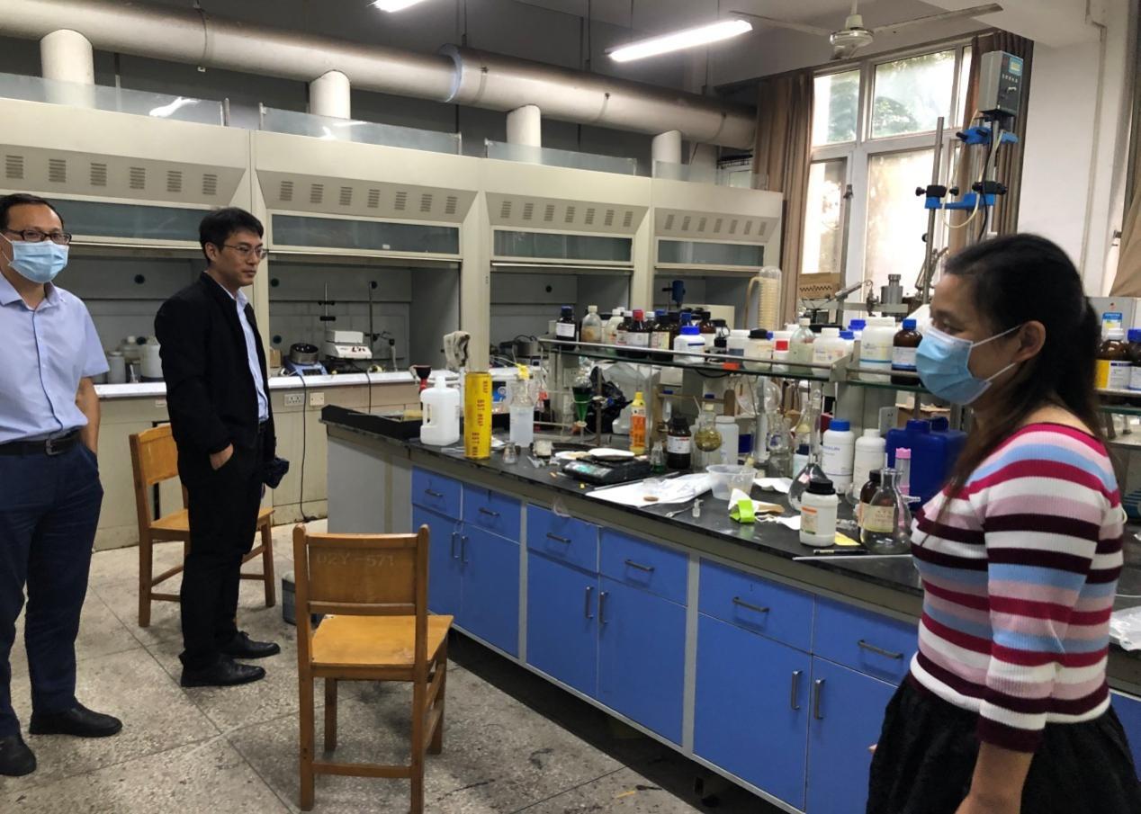(通讯员:李亚红,审稿:张延兵)为规范和加强学院实验室安全管理工作,充分保障疫情期间学生返校后实验教学和科研正常进行,防止不安全事故发生。9月28日上午,校实验室建设管理中心主任张宏敏、副主任张洪波带领实验室建设管理中心其他工作人员来williamhill(简称“材化学院”)进行安全督导工作。材化学院党委书记焦学然、副院长汪潇及实验室管理人员进行了迎检工作。