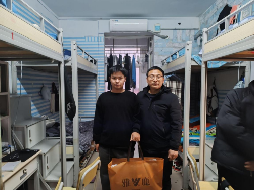 首先,焦书记进入学生宿舍与同学们亲切谈话,询问大家近期的学习情况及生活状况,切实强调近日气温骤降情况下,大家更应做好安全防护,让远隔千里的父母放心,充分表达了对同学们的重视与关心。随后由焦书记为同学们发放越冬羽绒服,并鼓励大家自立自强,努力学习,不断提高自身综合素质,做到品学兼优。同时,也勉励同学们常怀感恩之心,永葆青春之志,持续拼搏努力,不负国家培养,不负父母付出。同学们也积极回应,一方面感谢学校和学院的关心和支持,另一方面也汇报了自己日后的学习计划和生活规划,并表示会将学校和学院给予的温暖、关爱持续传递下去。活动最后,焦书记和受助学生代表合影留念,本次活动也在师生的暖心交流中圆满结束。