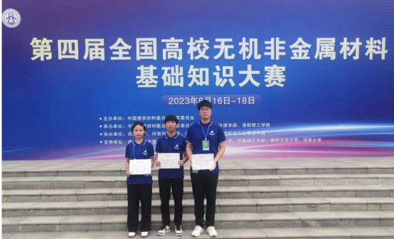 为激发无机非金属材料专业学生的学习兴趣,充分调动学生学习的积极性,促进学生对无机非金属材料专业基础知识的掌握,让学生理解材料学科的丰富内涵,培养学生的综合能力与团队合作精神,由中国建筑材料联合会专家委员会主办的第四届全国高校无机非金属材料基础知识大赛于2023年8月17日在洛阳理工学院举行,共有47所院校无机非金属材料工程专业80支代表队的师生参加本次大赛。我院建材系由李青霄老师、汪潇老师、张小婷老师指导的闫振周、李成和张楠楠同学在比赛中获得“三等奖”的好成绩。