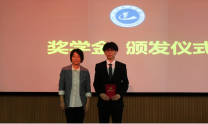 宿金勇副校长为“神马尼龙奖助学金”一等奖获得者颁发证书