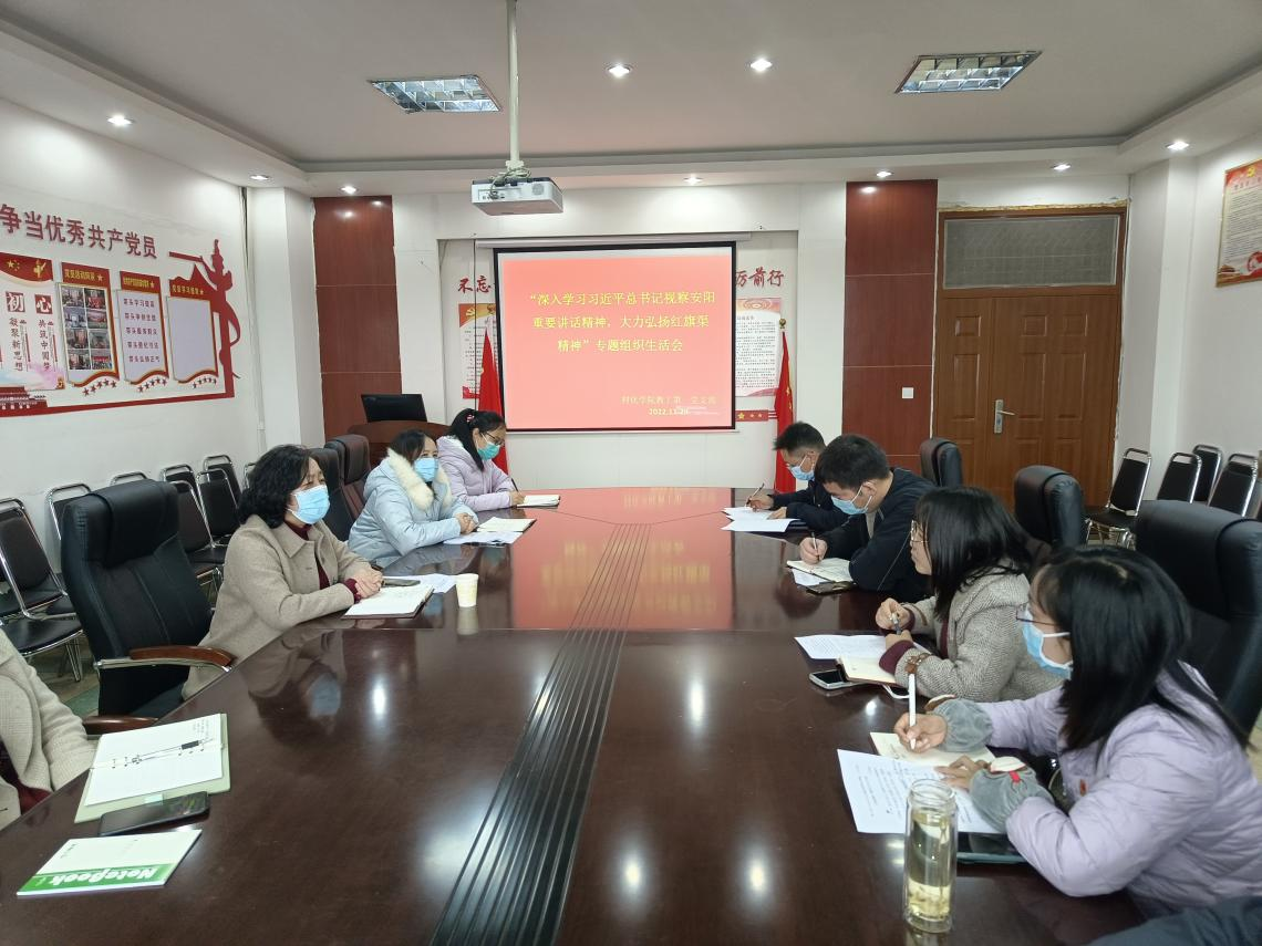 (通讯员 李银峰) 为弘扬伟大建党精神,弘扬红旗渠精神,更好发挥共产党员先锋模范作用,11月29日上午,材化学院教工第一党支部召开“深入学习习近平总书记视察安阳重要讲话精神,大力弘扬红旗渠精神”专题组织生活会,会议由党支部书记胡继勇同志主持,毛艳丽同志以一名普通党员身份参加了组织生活会。