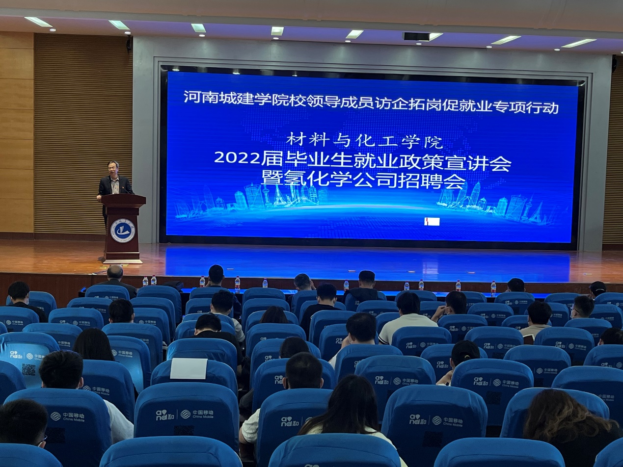 (通讯员:谭延方)为了贯彻落实教育部提出的“校领导成员访企拓岗促就业”专项行动,拓展我院2022届毕业生就业渠道,做好就业服务工作,2022年4月21日,williamhill在行政楼报告厅组织召开了2022届毕业生就业政策宣讲暨河南神马氢化学有限责任公司(简称氢化学公司)招聘会。参加本次会议的有杨风岭副校长、威廉希尔处樊铮钰处长、williamhill赵海鹏院长,氢化学公司总经理王大勇、副书记林凡法、人事主管汪园园,以及williamhill的部分教师和2022届全体毕业生。