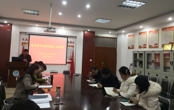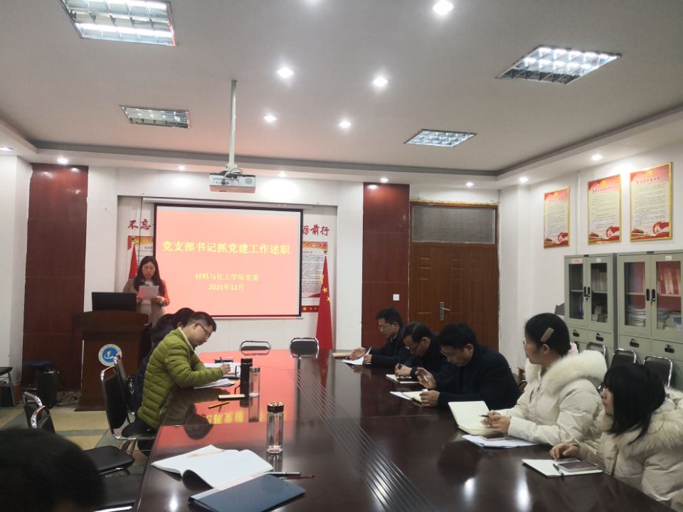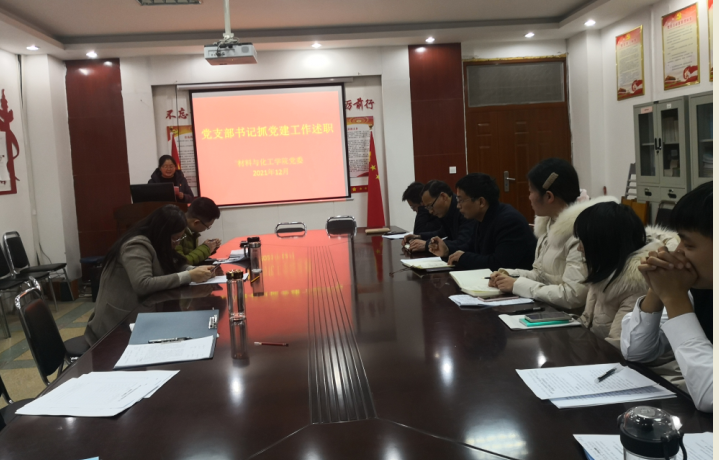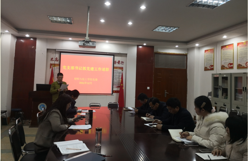 (通讯员 薛明三)12月3日下午,材化学院党委在9号楼C414会议室组织召开2021年度党支部书记抓党建工作述职评议会。材化学院党委委员、教工党支部书记、学生党支部书记、党支部委员和教师党员、学生党员代表20余人参加会议,会议由党委书记焦学然同志主持。