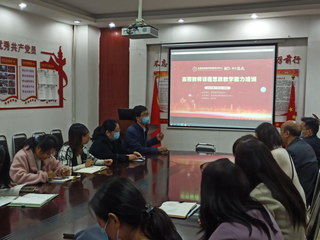 (通讯员:陈树芳)为深入贯彻实施《高等学校课程思政建设指导纲要》,提升我院教师课程思政建设意识和能力,全面推进课程思政高质量建设。11月24日下午14:00,材化学院赵海鹏院长、胡继勇副院长及全院无课教师在材化学院会议室集中观看《高校教师课程思政教学能力培训》开班式线上直播。