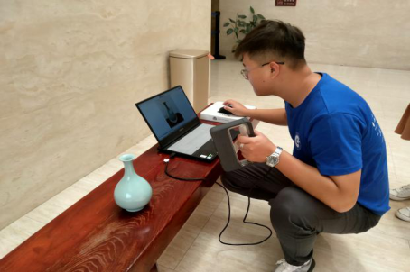 活动伊始,实践团怀着敬畏的心进入汝窑博物馆,在讲解员的带领下,先后参观了汝瓷之源、青瓷典范、汝窑遗绪三个展厅,全面认真学习了汝瓷的历史起源、汝官窑的来历和汝窑对瓷器的发展所产生的影响,近距离参观中华民族优秀瑰宝、接受文化的渲染和熏陶。随后,实践团来到了现代仿古展厅,直观的接触众多现代仿古制造的汝瓷陈列品。最后,实践团成员选取了部分陈列品进行了3D扫描与数据建模,为后期同学们的文化宣传及科技融合奠定了基础。