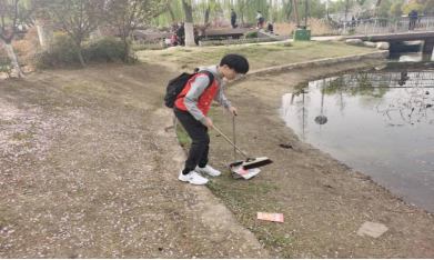 志愿者清扫地面垃圾