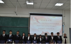 党总支副书记赵振新为第四届学生会主席团成员颁发聘书