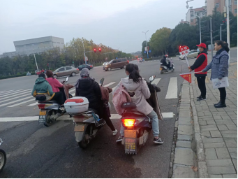 活动前期,材化志愿者预先准备好红马甲与帽子,并与交通管理部门建立联系。活动中,志愿者们分别在学院老师的带领下进行值班活动,志愿者们拿着志愿红旗指导公民文明出行,协助交警执勤,对非机动车辆及行人越线、闯红灯、无序通行等不文明行为进行劝导。下雨天,志愿者们依旧坚守岗位,尽职尽责维护交通秩序,引导非机动车辆及行人自觉遵守交通规则,向过马路的市民普及相关安全知识,劝导行人文明出行。