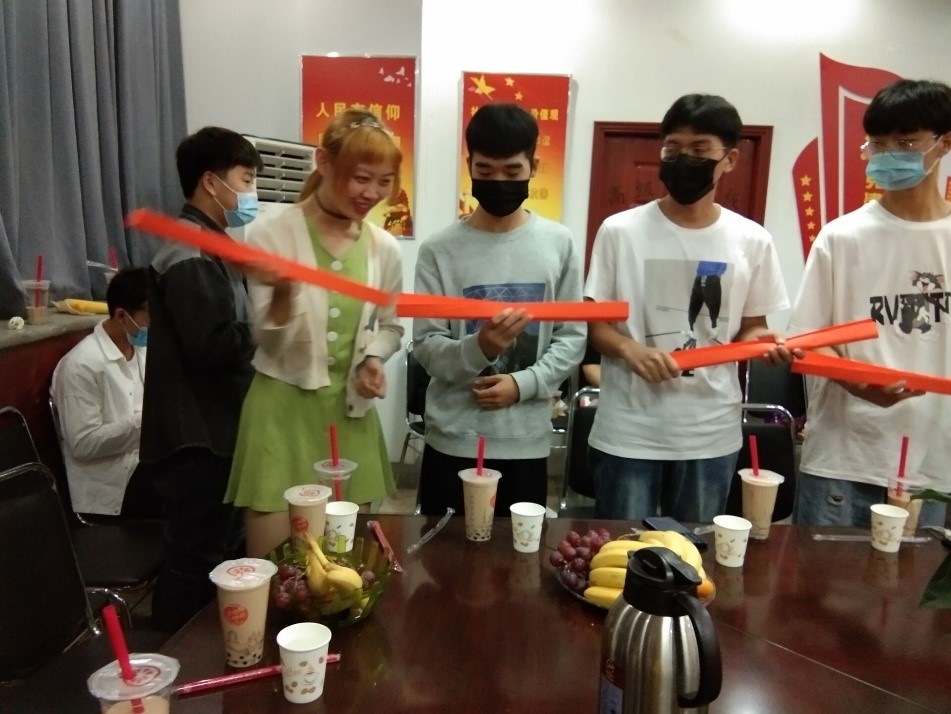 为了增加节日气氛,让少数民族新生更好的融入新环境和集体生活,各位老师们还与同学们一起开展了“珠行万里”、面粉接力等趣味游戏。“珠行万里”游戏开始时,同学们用小纸槽一个接着一个传递着手中的球,虽然中间出现了小失误,但同学们很快调整了回来,顺利把小球传递到了最后一名同学的手中。同学们相互配合,相互支持,小球的传递带动了大家的情绪并活跃了现场的气氛。在“面粉接力”游戏中,同学们首先分组并讨论接面粉纸的叠法和游戏技巧。随后,同学们分组进行面粉接力,在传递过程中有同学把面粉完美的传递到下一位同学的纸上,有的则因技巧不熟练,把面粉撒到了地上和身上,但同学们都玩得很开心,传递面粉剩余最少的一组同学还向大家进行了歌唱表演。活动最后在团总支书记任融对同学们的中秋祝福中圆满结束。