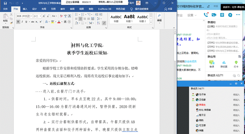 本次云班会各班辅导员老师从各个方面强调入学事宜,帮助材化学生尽快适应返校后的学习生活状态,同时也让同学们更加理解、支持和配合学校有关工作,从而创造平安和谐美丽校园。