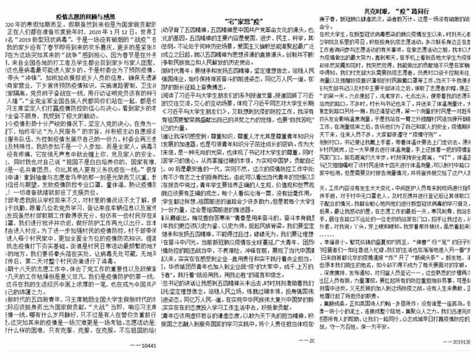 自19日起,“青鸽”服务队成员分别对12名防疫志愿者进行采访。在采访过程中,服务队成员对防疫志愿者的工作内容、工作感悟等多方面进行了了解,他们深深地被志愿者们无私奉献、迎难而上的志愿服务精神所感动。在疫情工作人员紧缺时期,防疫志愿者积极联系当地社区干部加入防疫志愿队伍,始终坚持在卡口,积极宣传新冠病毒相关内容,确保疫情阻隔在外,保证社区人员生命安全,这些无一不体现出防疫志愿者们的勇气与担当。与此同时,服务队开展了实践返乡故事征集活动,将收集的作品进行筛选展示,在火热的社会实践中展示他们的体会、感想和收获。