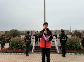 迎着冬日的寒风,国旗护卫队手擎旗帜,步伐铿锵,将国旗护送至国旗台前。当庄严的《义勇军进行曲》奏响,在场的师生肃立致敬,目视五星红旗随风飘动。升旗礼毕,屈在鑫在国旗下演讲,呼吁青年将个人的梦想与国家的梦想紧密相连,成为能担当民族复兴大任的时代新人。随后,2024级学生代表刘博文发言,激励同学们积极参与社会实践活动,努力锤炼道德修为,持续提高综合素质,在新时代的征程中书写绚丽篇章。